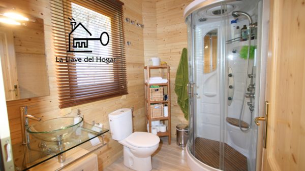 - Paredes exteriores compuesta por tronco de 80 mm (varios colores a elegir) + lámina impermeable + lana de roca de 50 mm + barrera de vapor + tablilla interior de 19 mm o si se desea por el cliente en su defecto Yeso prensado tipo Pladur.