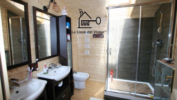 - Forjado de planta piso, en caso de existir dos plantas, compuesto por tablilla de 19 mm o yeso presado por debajo de las vigas, barrera de vapor fijado todo ello a la viga. Entre las vigas lana de roca de 50 mm (puede solicitarse mayor aislante). Por la parte superior de las vigas se fijará la tarima de 28 mm. (Opcionalmente puede instalarse parquet sintético AC5).