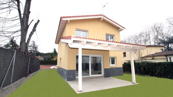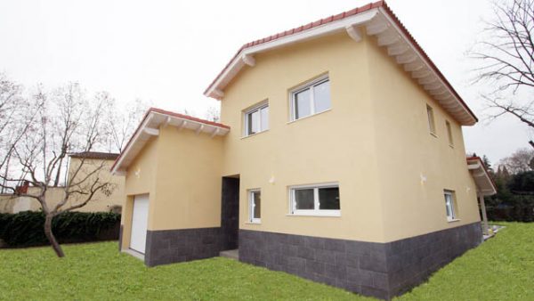 - Paredes exteriores acabadas con un sistema térmico completo compuesto por lana de roca de gran dureza revestida de varios elementos como malla, morteros especiales intemperie y una finalización exterior tipo monocapa color blanco. Existe posibilidades de otros colores. En cuanto a la estructura de la pared será de 60 mm de ancho por 150 mm de profundo en madera, en cuyo interior se colocará lana de roca de 150 mm. La estructura está unida entre otros elementos por un tablero de OSB que es una madera prensada con las fibras en varios sentidos que hacen que la estructura quede fija. Hacia el interior se coloca una barrera de vapor Rothoblaas , rastreles de 50 mm y se finaliza interiormente con placas de yeso prensado tipo Pladur. Opcionalmente puede finalizarse interiormente con tablillas de madera. Consultar. El grosor total de la pared es aproximadamente de unos 27 cm.
