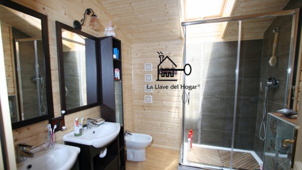 - Forjado de planta piso, en caso de existir dos plantas, compuesto por tablilla de 19 mm o yeso presado por debajo de las vigas, barrera de vapor fijado todo ello a la viga. Entre las vigas lana de roca de 50 mm (puede solicitarse mayor aislante). Por la parte superior de las vigas se fijará la tarima de 28 mm. (Opcionalmente puede instalarse parquet sintético AC5).