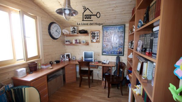 - Cubierta compuesta por los cabrios (vigas del tejado) bajo los cuales se coloca una barrera de vapor y una tablilla de 19 mm o yeso prensado. Entre los cabrios se coloca lana de roca de 150 mm, pudiéndose solicitar opcionalmente mayor aislante si los cabrios son de dimensiones superiores a 150 mm. Por encima de los cabrios se coloca una tarima de 20 mm y sobre esta una lámina impermeable ( no entra el agua en caso de rotura de una teja). Sobre la tarima y coincidiendo con los cabrios se colocan rastreles de 40 mm en el mismo sentido de los cabrios. Encima de estos rastreles y en sentido horizontal se coloca rastreles de 30 mm que servirán de fijación a las tejas de hormigón o cerámicas rojas. Otros colores consultar precios. Entre la lámina impermeable y la teja existe una cámara de ventilación que evita condensaciones.