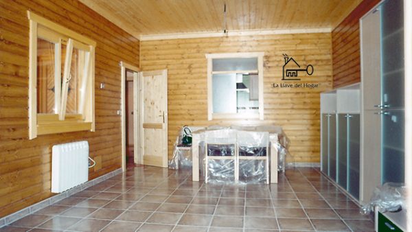 Una vez finalizada la construcción de toda la estructura de madera, sobre la base, se colocará suelo de gres en la planta baja. Si se prefiere se puede colocar tarima. En este caso sobre la base de hormigón se coloca una lámina asfáltica, rastréeles, entre los que se introduce una manta de 5 cm. de lana de roca, y a continuación una lamina de polietileno para evitar condensaciones. Finalmente se coloca la tarima y opcionalmente parquet.
