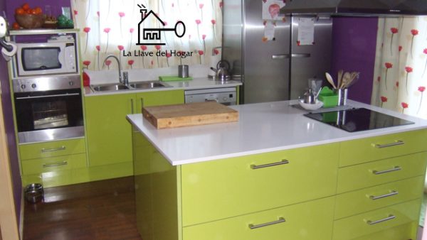 Cocina. La cocina va equipada con muebles altos y bajos. Existen varios modelos a elegir. Se instalará placa vitrocerámica eléctrica o bien de 4 fuegos a gas, campana extractora, horno eléctrico y fregadero, todo ello de la casa Teka o similar, en acabado metálico. Sobre la encimera posformada se alicatarán azulejos entre los armarios altos y bajos.